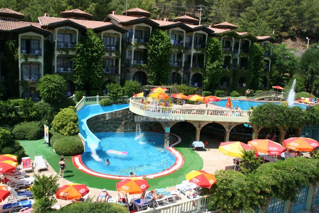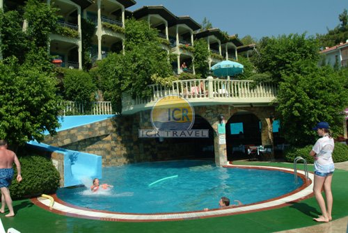 Club Aquarium Apartments are situated on a hillside looking over Icmeler village, with views of the mountains and the sea. Club Aquarium Apartments is a 'water themed' hotel popular with families, couples and groups wanting to stay in an imaginatively designed complex, in Icmeler, Turkey. Club Aquarium Apartments in Icmeler has a split level swimming pool with water slide, children's splash pool and sun terrace with sun loungers and pool bar providing refreshments and snacks. Icmeler centre is 15 minute walk from Club Aquarium Apartments or you can catch the local bus to the centre where they can drop you at Icmelers sandy beach. Club Aquarium Apartments provides a free shuttle service to it's sister complex Grand Aquarium where there is daytime and evening entertainment. Club Aquarium Apartments are perfect for a memorable holiday in Icmeler, Turkey.
